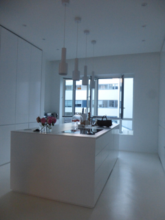 | グラフィックデザイナーの友人、D御夫妻の新居に伺う。建物全部を買い上げ、 各階の天井を抜いて階層から作り直すと言う壮大な計画。それも個人で さらに はパリ市内・・・。昨年の夏、まだ現場だった頃に見せて頂いた時にもそのス ケールには驚いたけれど、仕上がりの完璧さと塗装の美しさは目を 見張るばか り。どんなデザインでも細かい部分まで「施工と塗装の仕上がりの精度」が全体 の美しさを決定するのだと改めて実感する。スケールが大き すぎて私の小さな カメラでは写真には収まりきらない・・・。いつお会いしても「一度しかない人 生、自分の才能で自由にダイナミックに生きる醍醐 味」を感じるようなD御夫 妻、彼らの生き方そのもののようなお宅に感激する。 | ||||||||||||||||