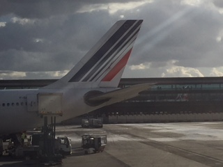 | ぐっすり眠ってあっという間にパリに到着、パッチワークのような緑にまだ雪が 少し残っている。天気雨が降ったばかりのようで虹でも出そうな神秘的 なお天 気のシャルル・ド・ゴール空港、コンコルドの機体が美しい。 | ||||||||||