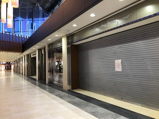 | パリ市内にいるかのように華やかなシャルル・ド・ゴール空港の免税店、エルメスやラデュレをはじめ殆どがココで揃うほど。しかし今は全てクローズ、シャッターが降りたブティックが延々と続く。 | ||||||||||