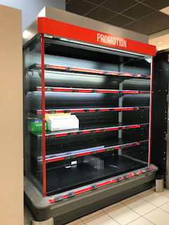 | 冷蔵庫に何もないのでまずはスーパーに立ち寄る。コロナの影響はここでも大きくまずは消毒用のジェル、普段は決して清潔とは言えないフランス人も必死でなすりつけている。陽気にお喋りしながらハムやチーズを切り分けてくれるスタンドは飛沫感染の温床とも言えるわけで当然クローズ。焼き立てのパンが並ぶケースも空っぽ、買えるのはパックに入った製品ばかり。 | ||||||||||
