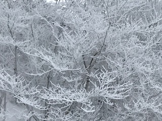 気温はぐんぐん下がりスキーに行く気持ちも少し萎える・・・、快晴だった空も雲の流れが速くあっという間に真っ白に。ゲレンデに出てみると気温はマイナス7度、リフトを降りると霧氷の森が広がる。 |