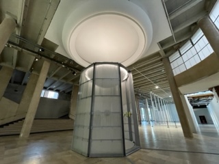 | 挿入された鉄筋コンクリートの円筒はそのまま地下に達し、ビデオアートなどを鑑賞する小さなホールを囲みぐるり、一周する。 | ||||||||||