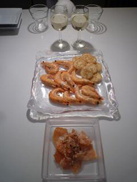 | ようやく整った新しいアトリエのキッチン。お料理の好きな私は自分でお料理できない事はけっこうス トレスになる。ボイルした小エビにレモンクリームをつけて頂くオードブルや、サーモンのハーブマリネなど、ウチで頂くとカロリーもコントロールできて、ダ イエットにもよさそう。 | ||||||||||