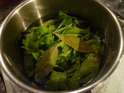 暑い日はクッキングにあまり時間をかけたく無いけれど、しっかり頂きたい。冷製のポークにピリッとしたマスタードをつけて、冷えた白ワインと頂くのは我が家の定番のプラ。セロリの葉っぱとローリエを煮立てているとキッチンにいい香が広がって、お料理好きの私のは素晴らしいリフレッシュタイム。