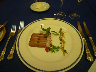 | 最近、忙しい上に早く眠ってしまうのでなかなかディナーを外で頂くことがない。更にサンジェルマンから出ない私は毎回同じレストランで、毎回同じメニュウ・・・。このHPをご覧のオーナーから「新しいメニュウを試しにどう?」とお誘いを頂き、Pacques パック(復活祭)のお休みで長い週末、友人と素敵なディナーになる。「鮪のmi-cuit ミ・キュイ」とは、オーナーが日本で食べた「かつおのたたき」が忘れられず「半生」と言うフランス料理には珍しいスタイルに仕上げたのだとか。春のお野菜を小さく刻んでトッピング。冷えたシャンパンとの相性もぴったり。 | ||||||||||