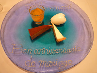 | 弁護士の先生御夫妻に結婚記念日をお祝いして頂く。パリで頂くより立派なアスパラガスは長野産とか。茹で加減も素晴らしく春を感じる一皿。ワゴンからあれこれとデザートを選んで、盛り付けられて来たプレートにご夫妻の細やかなお心遣い・・・。これからも永いお付き合いが続きますように、と感謝の気持ちで素敵なディナーの夜。 | ||||||||||