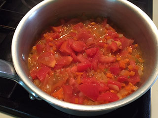 | 結婚したばかりの頃パリでコルドン・ブルーやリッツのお料理教室に通ってい た。そのどちらでも「玉ねぎと人参、セロリをミルポアに切って」と、まずは基本という 感じ でmirepoixという言葉を覚えた。セロリはシミが出来やすいと聞いてあまり頂か ないようにしているので我が家では玉ねぎと人参。一度に 沢山切って炒めてお くとさまざまなお料理に使えてとても便利。熟したトマトをざく切りにしてかぶ せるように加えて煮詰めて行く。お水を全く加えな いのでお野菜の味がしっか り楽しめる。ニョッキのトマトソースが今日のテラスランチのメニュウ、もう すっかり夏の軽井沢。 | ||||||||||||||||