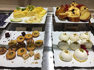 乗り換えのローマに着くともうすっかり夜。ラウンジのメニュウもディナーに切 り替わり、いつものアンティパストの他に温かいラザニアなど。トロト ロに溶 けたチーズとナスのラザニアが美味しくてついまた頂いてしまう。冷えたスプマ ンテとホカホカのラザニア、パリの我が家までまだ先は長 い・・・と言い訳し つつまた一皿。