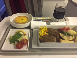 | 機内に入りシートに身を沈めるとようやくリラックス、シャンパンを頂きつつ快 晴の空を眺める。機内食も珍しく完食、久しぶりに一人の時間を満喫す る。 | ||||||||||||||||