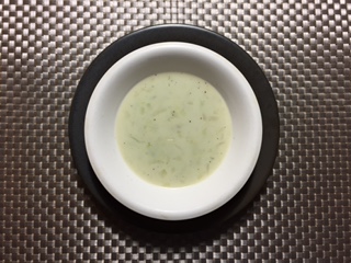 | パリでも東京でも大好きなメニュウ、スープ。コンソメはもちろんポタージュや ガスパチョ、ヴィシソワーズなどバリエーションも密かに豊富。ミキ サーでは なく昔ながらのすり鉢で丁寧に潰して少しずつスープを足して・・・。少しお野 菜の食感が残るご馳走のような冷製スープ、枝豆と玉ねぎの ヴィシソワーズ。 薄いグリーンが黒いお皿に映えて、見た目も涼しげ。 | ||||||||||