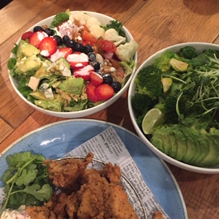 | 久しぶりに同級生と集まる。最近みんなの関心はすっかり美容から健康へ?ヘル シーなレストランのチョイスが嬉しい。たっぷりの有機野菜を頂けるサ ラダ ボールはバリエーションも豊富で楽しい。イチゴやブルーベリーをトッピングし たお花畑のようなサラダ、グリーン系のお野菜だけを合わせた緑の お庭によう なサラダ。鮮やかなビタミンカラーがテーブルに溢れる。 | ||||||||||