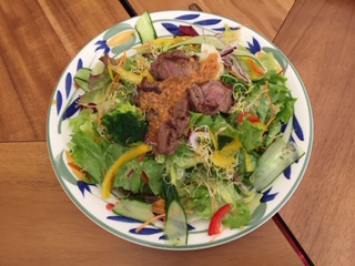 | 連休が終ると全てが一気に再スタートでアトリエも大忙し、ランチも外に出る余 裕はなくアトリエのキッチンで手早く済ませる。モデルさんに教わった 「肉と 魚を両方摂る」というスタイル、サラダのトッピングにはグリルした赤身のビー フ、五穀ご飯には〆鯖・・・と。いずれにせよ常に完食の私、ビ タミンもミネ ラルもたっぷりチャージして夜まで頑張れそう。 | ||||||||||