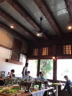 | 主人は今晩東京へ、私は明朝香港へと別々に出発するのでさまざまな雑用を車で 足しつつお気に入りのヴェトナム料理でクイックランチ。バン・セオは ヴェト ナム風オムレツ?香草とシーフードが溢れるほど入ってヴォリュームたっぷり、 竹籠にあしらわれたライスペーパーも涼しげ。ココナツミルクとタロイモのデザートは 真っ白でほんのり温かいお気に入りのデザート。 | ||||||||||