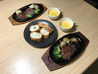 | 軽井沢のディナーの定番、ステーキを焼く。ステーキプレートにニンニクを準備、付け合わせはベークドポテトとブロッコリーとこちらも定番。寒くなってきた今晩はカボチャのポタージュをお供に。単純なたんぱく質は消化にも良くシンプルに元気になれそう。 | ||||||||||
