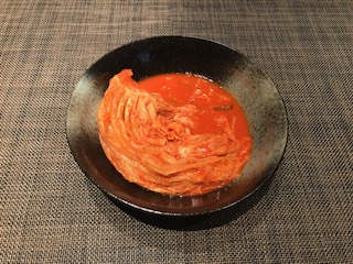 | なぜかパリから買って来た韓国産のキムチ、塩分が少なく様々な野菜の旨味と何種類もの唐辛子が醸し出す複雑な味わいが絡み合ってとても美味しい。小さく切って瓶に詰めると追発酵するのか?瓶の蓋がグラグラ動く・・・。 | ||||||||||
