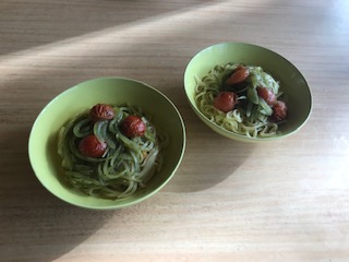 | ランチにはカンタンな麺のバリエーション、軽いお素麺が好みでも美容のためにはルチンを含む蕎麦をチョイス。タウリンたっぷりのイカにカボスとカブの葉でビタミンもチャージ。パリでも最近人気のSOBA、サラザンと呼ばれるそば粉のクレープも美味しい。 | ||||||||||