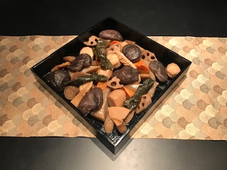 お三ヶ日も終わりに近ずくとお節料理もそろそろおしまい、残りのお煮しめを煮返し最後まで楽しむ。ほっくり炊けた里芋や大ぶりのどんこ、蒟蒻はしっかり味が浸みてますます美味しい・・・。 |