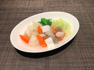 フランス人が好きな和食によく上がる「おでん」。竹輪やはんぺんなど魚の練り物はフランスで言う「クネル」、白身魚の摺り身にベシャメルソースという濃厚さ。カルシウムたっぷりのイワシのつみれやホクホクのジャガイモ、白菜や小松菜も添えて寒い日の定番、私流おでん。 |