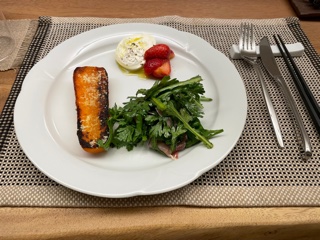 | 軽井沢に来ると真面目な和食の夕食を作る。鯛の塩焼きに大根のなます、きゅうりの糠漬けと白菜のお漬物になめこのお味噌汁。タンパク質と野菜、発酵食品であるお漬物やお味噌も摂れる和食は究極の美容食 | ||||||||||