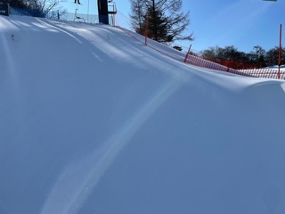 | 快晴の初滑りはリフトが止まるほどの強風、今シーズンは雪が多いのは嬉しいけれど本当に寒い。ランチには温かい天ぷら蕎麦、湯気の立つお椀にサクサクの天ぷらが深々と美味しい。 | ||||||||||