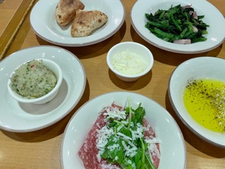 | イタリアンのファミリーレストランに初めて潜入。イタリアで飲むような軽いワインを堪能しつつ、小さなポーションでいろいろなメニュウをチョイス、そのバリエーションと組み合わせに驚く。 | ||||||||||