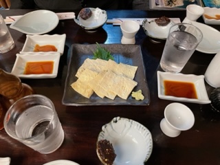 | ワークショップも無事に終わり、主人のゼミ生がフランス人の友人を囲みお礼のディナー。まだまだコロナ禍のため、バイキング形式でマスクを外すのは乾杯の写真だけ。日本の食材もすっかり詳しくなり、お重に並ぶ数々のメニュウも嬉しそう。 | |||||||