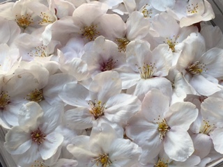 | 今年は桜の開花が例年より少し遅くいつもの公園もまだ5分咲き・・・。風が強 かったのか開いたばかりの桜の花ごと落ちていて、早速拾ってテーブル に。河 上恭一郎先生のガラスのお重に詰めるように活ける。刷りガラスに桜の薄桃色が 透けて・・・素敵な春のテーブルに。 | ||||||||||