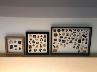 | 旅先で集めた膨大な数のピンバッチ、一つ一つは思い出深くとも身に着ける機会もないまま箱の中。額装しようにも収まりが悪くコレクション用のケースは味気ない。写真用のフレームをリメイクしてオリジナルのピンバッチ額を作る。訪れた時の光景を思い出しつつ美しく配置、ピンを刺すとピタッと収まりようやく念願の額装。 |