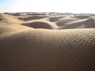 マトマタからさらに南下、ついにサハラ砂漠、Ksar Ghilane(クサール・ギレン)へ。 らくだに乗ってサハラ砂漠を歩く。どこまで行っても砂丘が続き、永遠に歩いていかれそうな気がする。 悠久のロマンとはこのこと・・・。らくだ引きが歌うアラブの歌も遠くこだまするように聞こえる。 今日はイスラム教の儀式、犠牲祭なので、見渡す限りらくだすら居ない。 私達だけのサハラ・・・。 | |||||||||||||||||||||